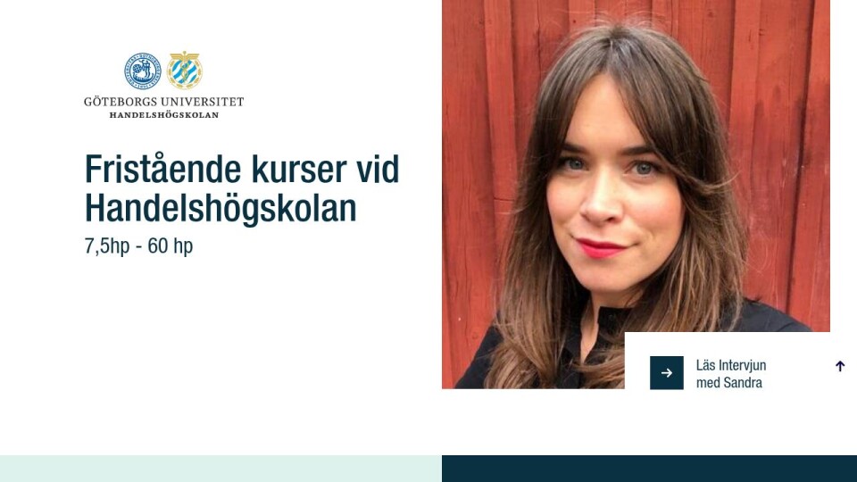 Du kan med fristående kurser bygga ihop din egen kandidatexamen*. Det ger dig möjligheten att skapa din egen kombination av ämnen efter personligt tycke och smak. Kurserna kan läsas i vilken ordning du vill och du kan välja om du vill läsa på deltid eller heltid.