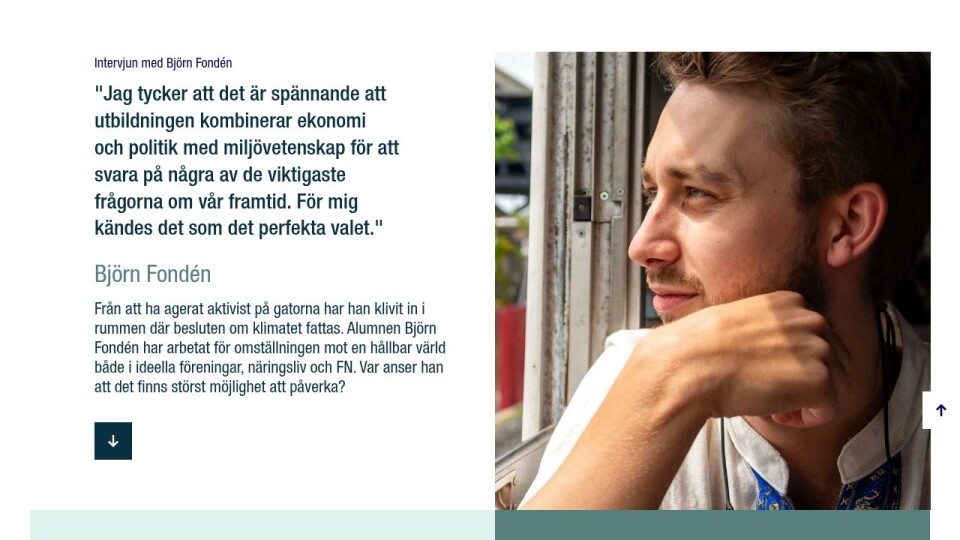 Från att ha agerat aktivist på gatorna har han klivit in i rummen där besluten om klimatet fattas. Alumnen Björn Fondén har arbetat för omställningen mot en hållbar värld både i ideella föreningar, näringsliv och FN. Var anser han att det finns störst möjlighet att påverka?