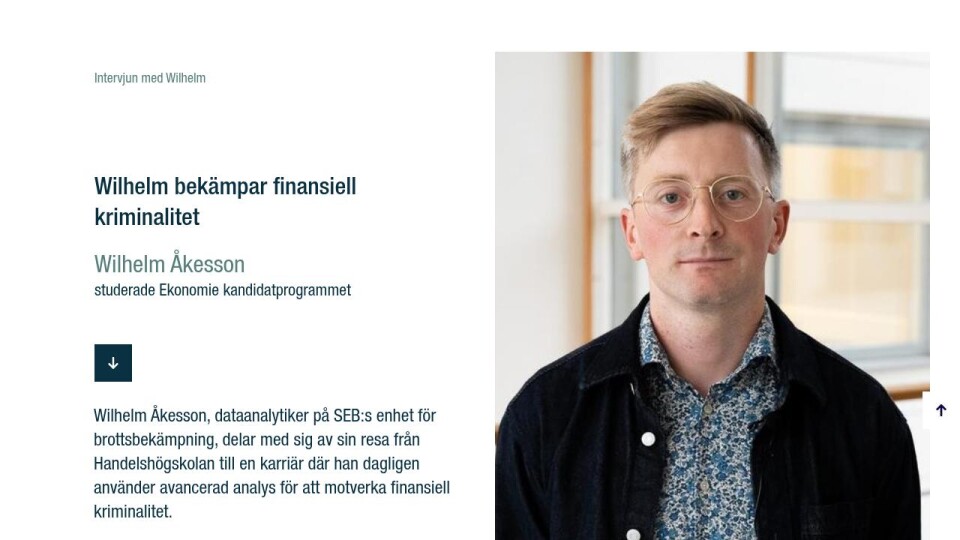 Wilhelm Åkesson, dataanalytiker på SEB:s enhet för brottsbekämpning, delar med sig av sin resa från Handelshögskolan till en karriär där han dagligen använder avancerad analys för att motverka finansiell kriminalitet.